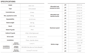 Gracias a la optimización de rigidez e inercia del nuevo diseño mecánico, combinada con un algoritmo avanzado de trayectoria, mejora el rendimiento dinámico y la eficiencia del ciclo de trabajo. Su diseño compacto del gabinete facilita una implementación flexible dentro de líneas de producción automatizadas. El robot alcanza una repetibilidad de ±0,05 mm, adecuada para operaciones que requieren posicionamiento estable y repetible.