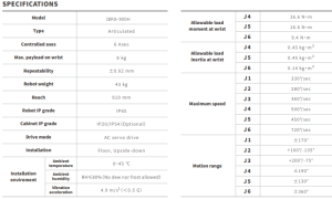 El IER8-900H es un robot industrial articulado de 6 ejes, desarrollado para aplicaciones de automatización industrial que requieren alta precisión, robustez y confiabilidad en entornos productivos exigentes. Con una capacidad de carga máxima de 8 kg y un alcance máximo de 910 mm, este modelo proporciona una solución equilibrada para procesos que demandan mayor rango de trabajo y estabilidad operativa.
