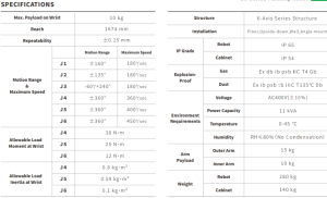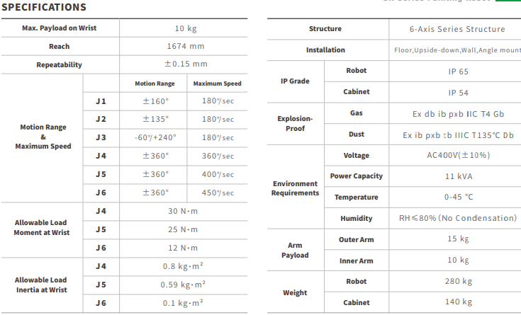 Dispone de software estándar para procesos de pintura, E/S integradas y opción de programación offline, reduciendo los tiempos de puesta en marcha. Presenta grado de protección IP65 para el robot e IP54 para el gabinete, y cuenta con certificaciones antiexplosivas que permiten su uso en entornos con presencia de gases y polvo. Está orientado a pintura de piezas industriales como madera, muebles, cerámica, metal, contenedores, cajas de almacenamiento energético, maquinaria de construcción y estructuras de acero, donde se requiere precisión, estabilidad y confiabilidad operativa.
